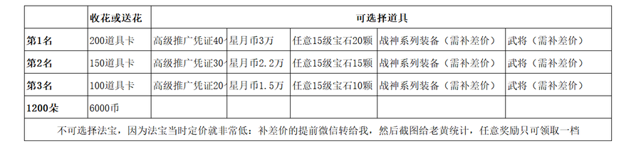 ———————————————————————————— 9,年度最佳贡献奖励,群里多次帮主新玩家的,不乱水群的,真正活跃的玩家,奖励,星月币50000(3个名额,公布时间12.30日),请不要提前跑来自作聪明的问我可以不什么的,我都看在眼里的,最佳管理,也会给一定的奖励 ———————————————————————————— 10,年终总结活动箱子,开始预付预售,预付可额外获得年终最大活动的礼物,开出的东西,都是全新的,年终将是最大的一次放血和年终活动 一大区,傲视可概率开出,武器,装备,金符,金色腊梅等道具 新版可概率开出,金色腊梅,定制武将技能的武将,方天,宝物,马装,宝石,等道具的其中之一 预付达到300,给与星月币2000, 预付达到1000,一大给出武器,坐骑,马装之外的装备,自选2件,没有预付的不会给这些,现在开始可以预付 预付达到2000,一大给出武器,坐骑,马装之外的装备,自选2件,没有预付的不会给这些,现在开始可以预付 以此类推 新版预付达到1000的,额外附送御赐·首饰*2 ,注明:御赐首饰属性同龙虎榜第三名的属性 游戏内将于12.15日开放兑换本装备,兑换的条件是 20件情缘换取1个 同时会开放情缘装备升级,多件情缘装备,升级更高级的真·情缘装 ————————————————————————————